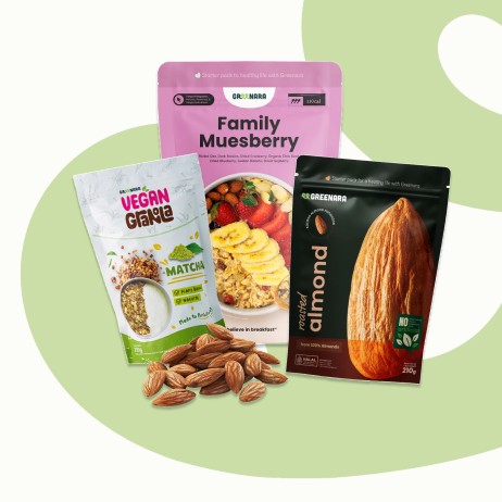 Hasil inovasi Greenara menggabungkan manisnya coklat alami premium dengan almond premium yang mampu memberikan rasa yang enak sebagai pengganti snacking pada saat sendiri atau bersama dengan keluarga, teman , sahabat